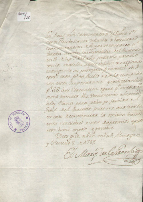 Sobre la orden del conde de Floridablanca relativa a guardar la —– porque algunos pueblos no han remitido los documentos relativos a esos datos.