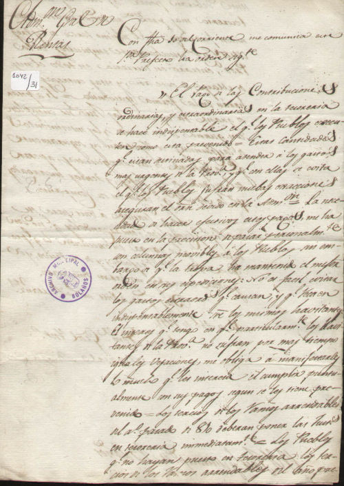 Archivo Histórico Municipal de Bolaños/ Secretaría: correspondencia/ 42/ 1042-31/ 1 folio.