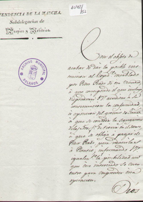 Archivo Histórico Municipal de Bolaños/ Secretaría: correspondencia/ 42/ 1042-52/ 1 folio.