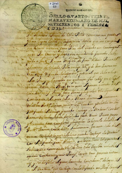 Petición, letra del s. XVIII, sello real, tinta negra, buen estado de conservación.
