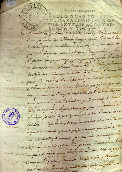 Trámites, letra del s. XVIII, sello real, tinta negra, buen estado de conservación.