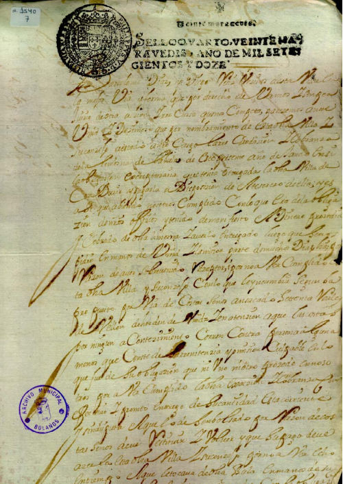 Trámites, letra del s. XVIII, sello real, tinta negra, buen estado de conservación.