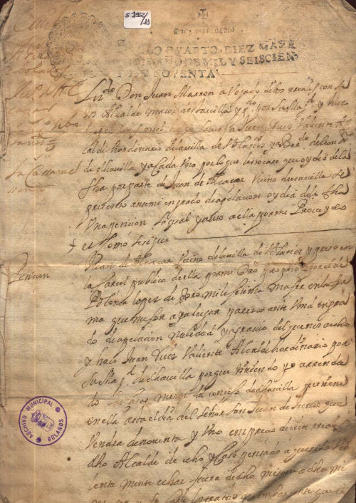 Pleito, letra del s. XVII, sello real, tinta negra, regular estado de conservación.