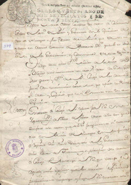 Archivo Histórico Municipal de Bolaños/ 27/ 379/ Reales Órdenes/ 4 folios