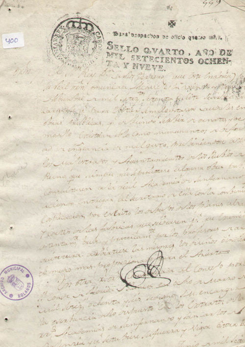Archivo Histórico Municipal de Bolaños/ Reales Órdenes/ 27/ 400/ 2 folios.