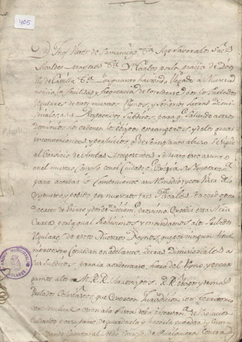 Archivo Histórico Municipal de Bolaños/ Reales órdenes/ 27/ 405/ 11 folios.
