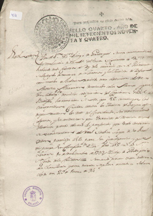 Archivo Histórico Municipal de Bolaños/ Reales Órdenes/ 27/ 411/ 3 folios.