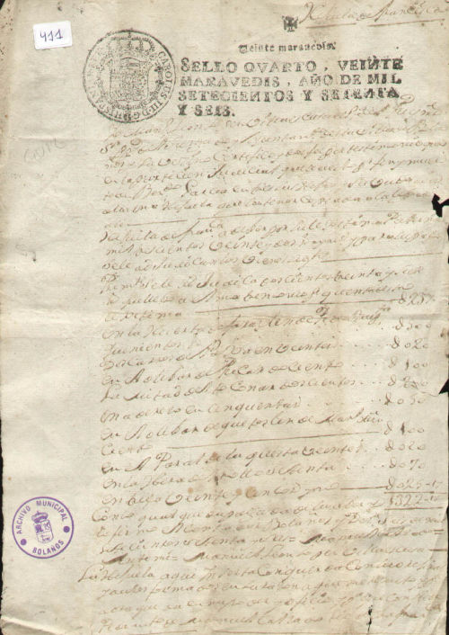 Archivo Notarial de Bolaños/ Civil: escribanías/ 10E/ 411/ 1 folios.