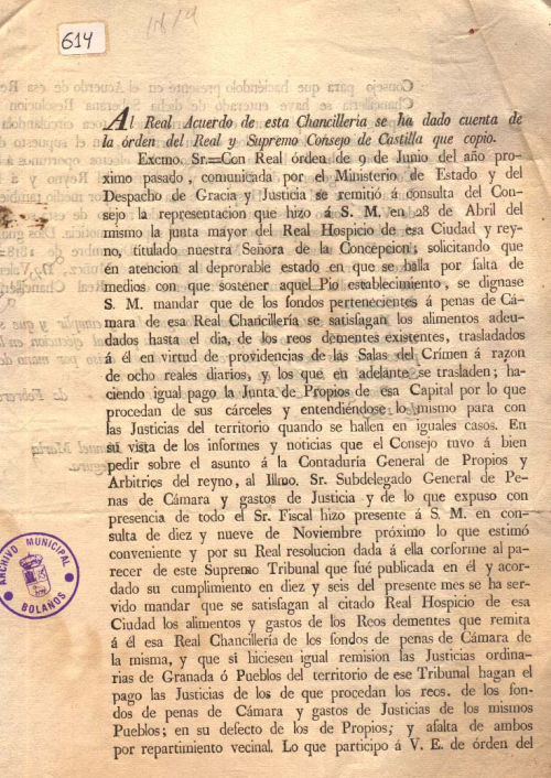 Orden, letra del s. XIX, sello real, tinta negra, regular estado de conservación.