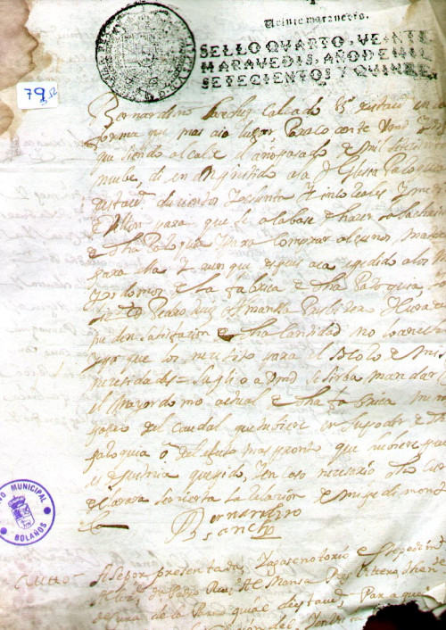 Gastos, letra del s. XVIII, papel sellado, sello real, tinta sepia, mal estado de conservación